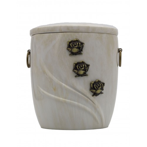 Urna kompozit anyagból, vanília színben ívelt formával rózsa fémrátéttel.