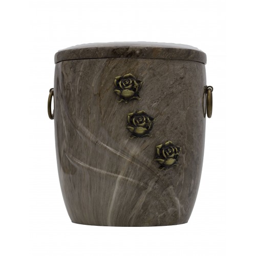 Urna kompozit anyagból, barna színben ívelt formával rózsa fémrátéttel.