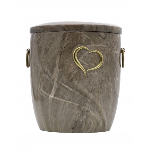 Urna kompozit anyagból, barna színben ívelt formával szív fémrátéttel.