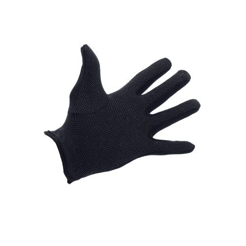 Kézfejen varrott mintával, a tenyérrészen mikro pöttyös temetési kesztyű fekete színben. Az elegáns viselet mellett a gumírozott tenyérrész segíti a munkavégzést.
