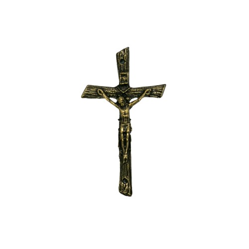 Koporsóra való feszület fémből fa urnára 7,5cm-es méretben, antikolt kivitelben.