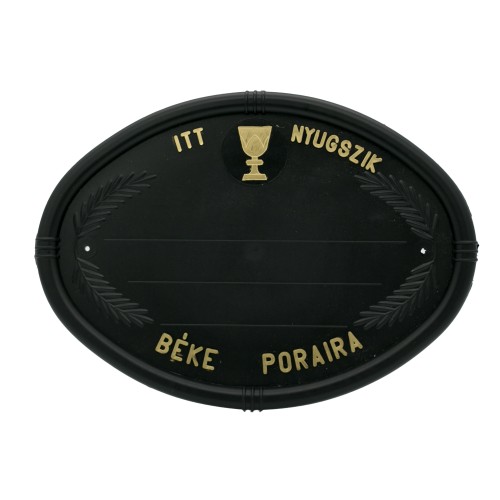 Fejfatábla sírjelzőre műanyagból református, kelyhes ovális kivitelben.
