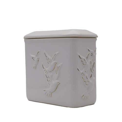 Urna kerámia aranyozott szögletes fehér galamb mintával