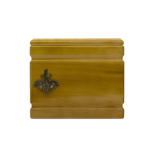 Iker fa urna natúr, lakkozott kivitelben kereszt szőlővel fémrátéttel.