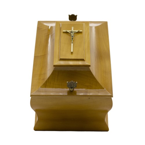 Urna fa pagoda kereszt fémrátéttel natúr színben
