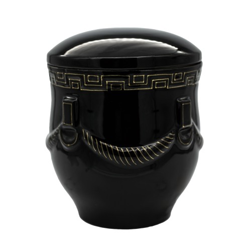 Aranyozott kerámia urna körbefutó füzéres mintával fekete színben.