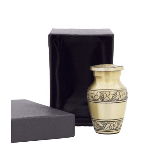 Amerikai stílusú fém ereklyetartó alumíniumból exkluzív kivitelben arany színben gravírozott mintával ereklyetartóval.