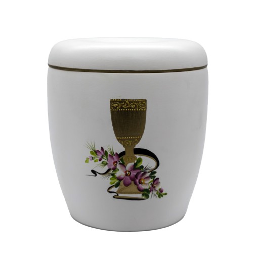 Kerámia urna matt felülettel kézzel festett kehely mintával.