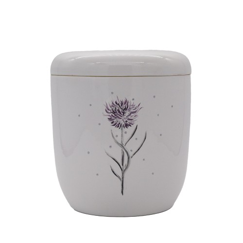 Kerámia urna matt felülettel kézzel festett imola mintával fehér színben.