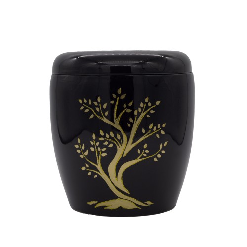 Kerámia urna matt felülettel kézzel festett életfa mintával fekete színben.