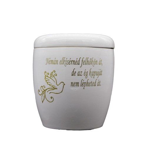 Kerámia urna matt felülettel kézzel festett idézettel galamb fehér színben.