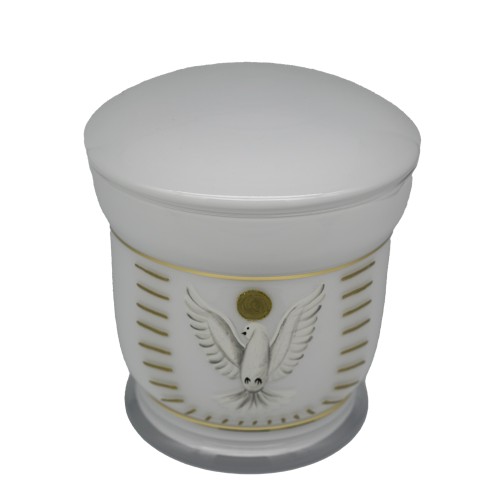 Üvegopál urna galamb mintával fehér színben