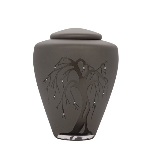 Exkluzív matt szürke üvegopál urna szomorúfűz mintával.