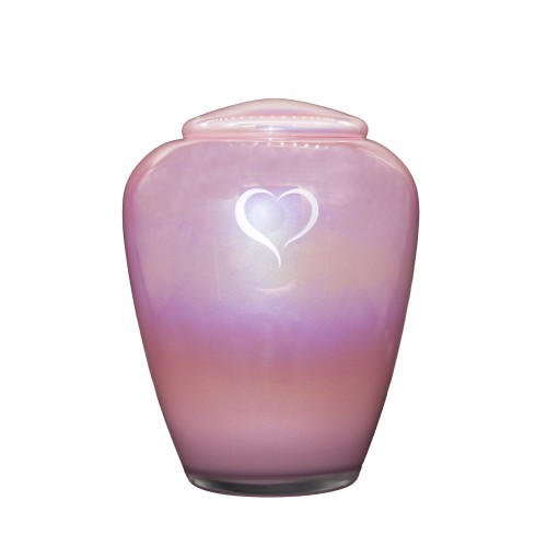 Exkluzív rózsaszín üvegopál urna szív mintával.