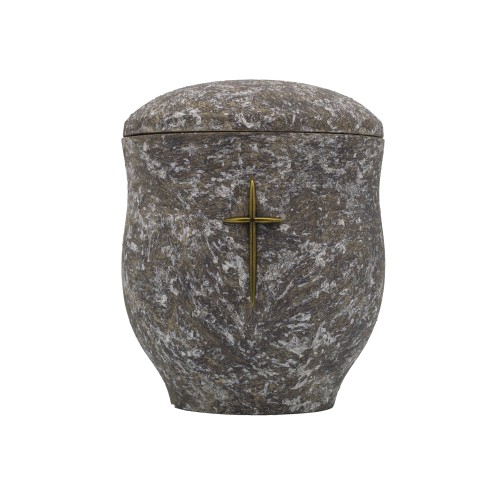 Kerámia urna carrarai márvány hatású fém kereszt dísszel.