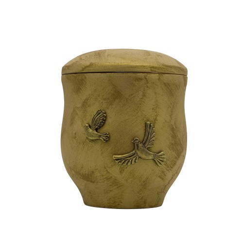 Kerámia urna Makrana arany márvány hatású fém galamb dísszel.