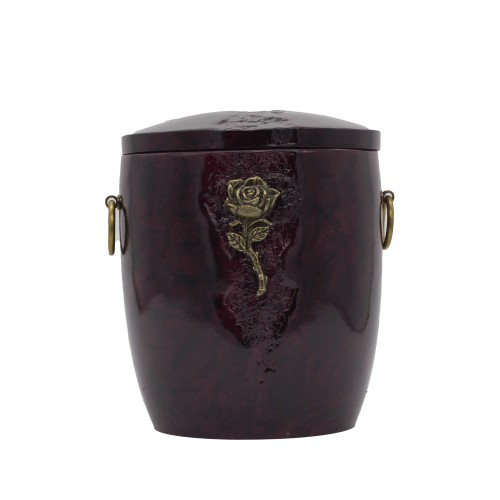 Urna kompozit anyagból, bordó színben hasadék formával rózsa fémrátéttel.