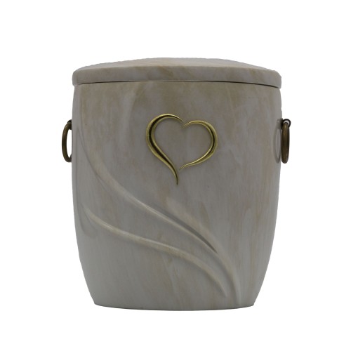 Urna kompozit anyagból, vanília színben ívelt formával szív fémrátéttel.