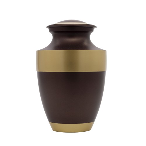 Amerikai stílusú fém urna exkluzív kivitelben matt barna színben széles arany övvel.