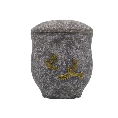 Kerámia urna carrarai márvány hatású fém galamb dísszel.