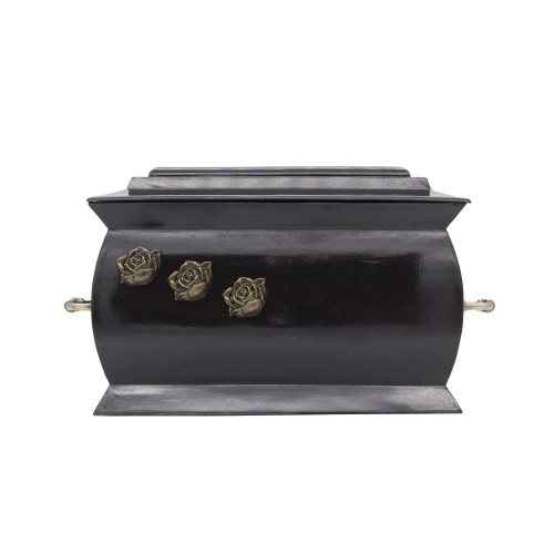 Urna kompozit anyagból, fekete gránit őrleménnyel dúsítva szögletes formában rózsa mintával.
