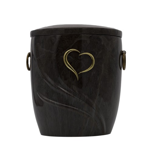 Urna kompozit anyagból, szürke színben ívelt formával szív fémrátéttel.