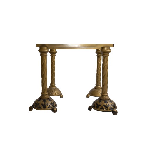 Koporsótartó bak modern stílusban fém öntvény anyagból óarany színben. Strapabíró, szétszedhető, szállításra alkalmas.