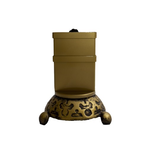 Fejfa, sírjelző kereszt tartó modern stílusban fém öntvény anyagból óarany színben. A sírjelző a fejfatartóba helyezve elegánsan a ravataldísz szerves részeként funkcionál, a szárnyas anyákkal fixálva nem dől fel. Strapabíró, szállításra alkalmas.